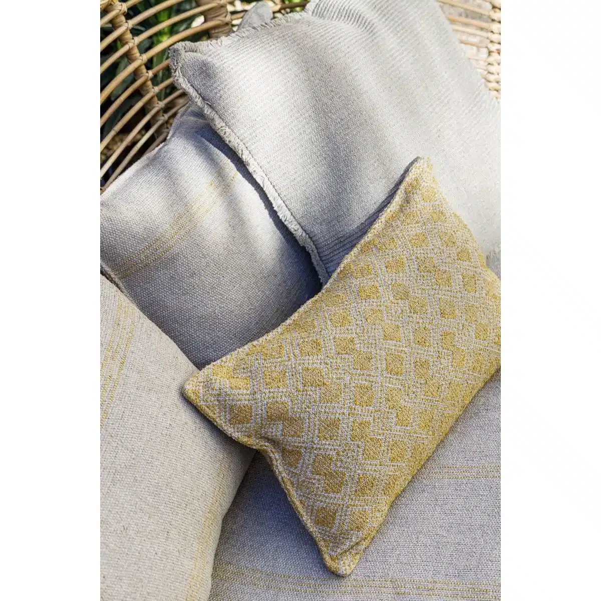 Tejido jacquard outdoor de inspiración étnica/oriental de la colección HOLBOX de Gancedo, con 40.000 ciclos Martindale.