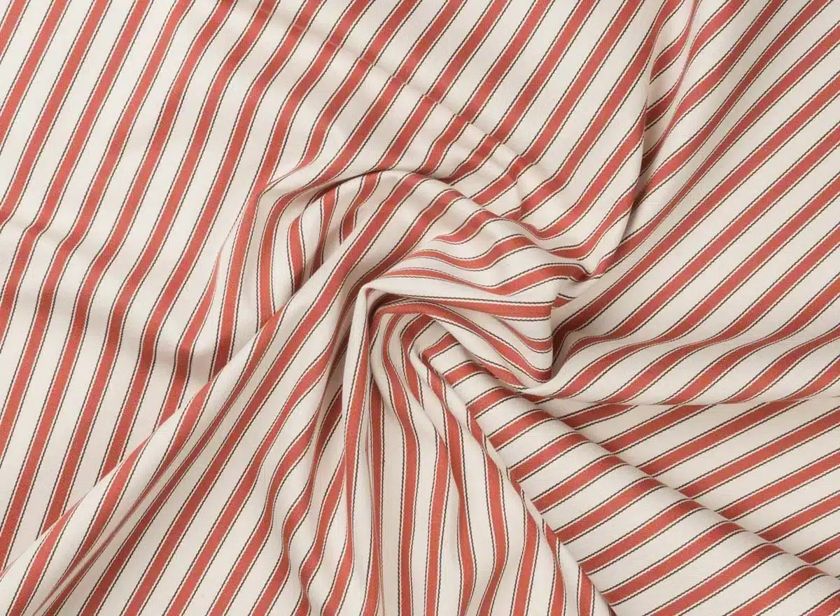 Tela de rayas 100% algodón que representa la excelencia en las telas ticking. Destaca por la calidad de su estampado, donde la franja central de color se realza con finas rayas a cada lado. Una opción ideal dentro de las telas para tapizar por su estilo clásico y atemporal.