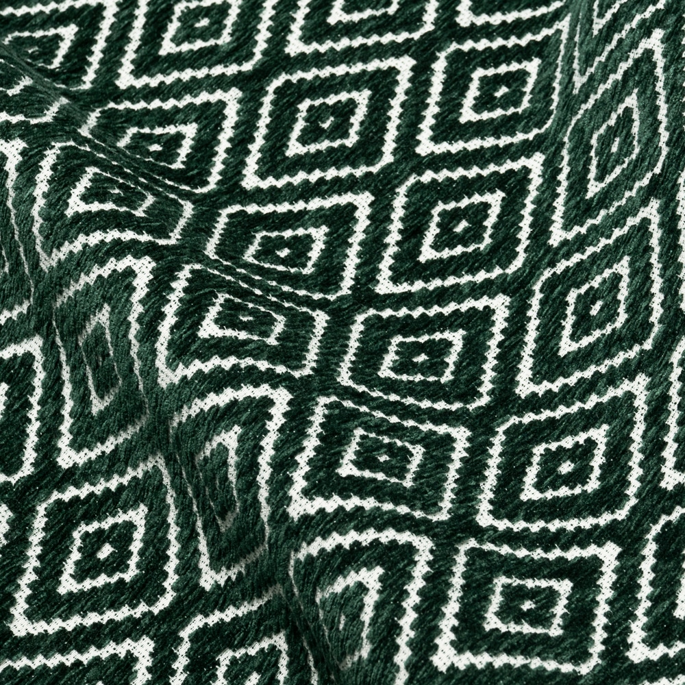 Tapicería Geométrico Tampico Verde es una tela tejida con un bonito dibujo geométrico en tono verde y blanco. Este tejido es reversible, la parte trasera es blanca con el dibujo en verde justo al contrario que el otro lado, pero se puede usar indistintamente. Es una tela gruesa con cuerpo y de tacto suave y agradable.