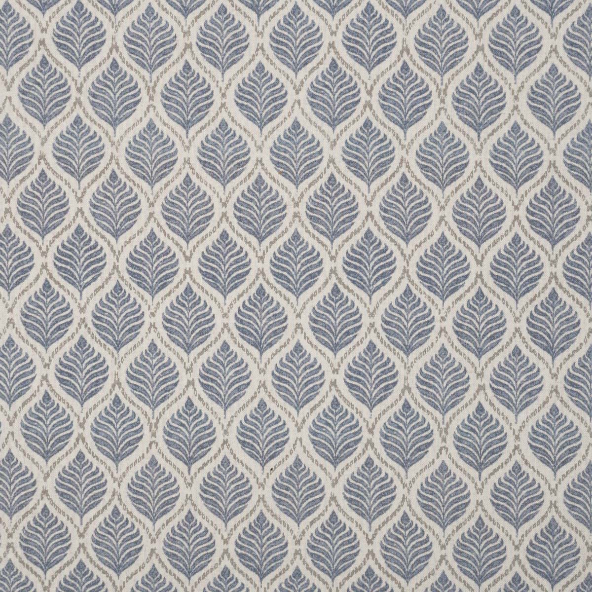Tela Lino Hoja Block Print es una base de lino y algodón en color piedra natural estampada con motivos y figuras geométricas en forma de hoja en color azul, ribeteada de una fina línea gris. Es Ideal para tapizar muebles de uso moderado como cabeceros, bancos, sillones, etc. y para hacer cortinas, colchas, cojines y cualquier artículo decorativo del hogar