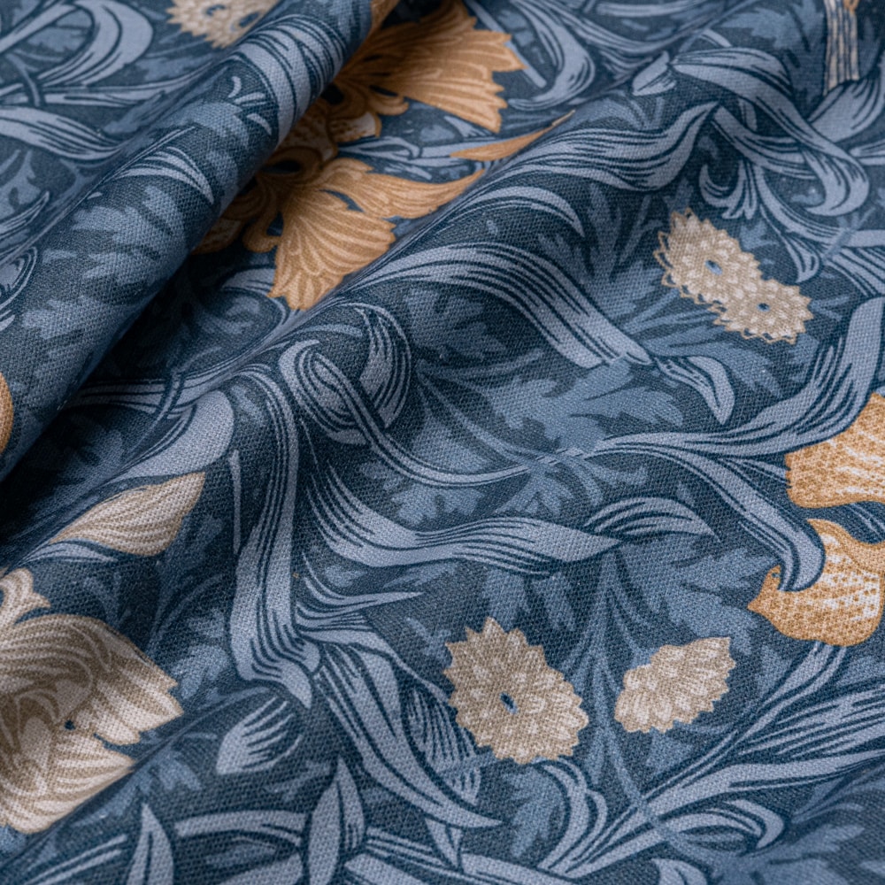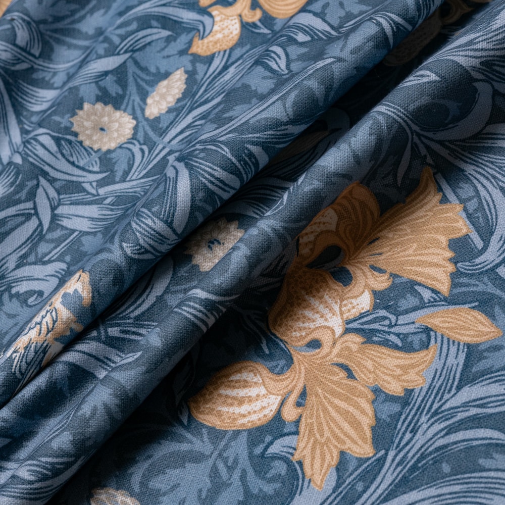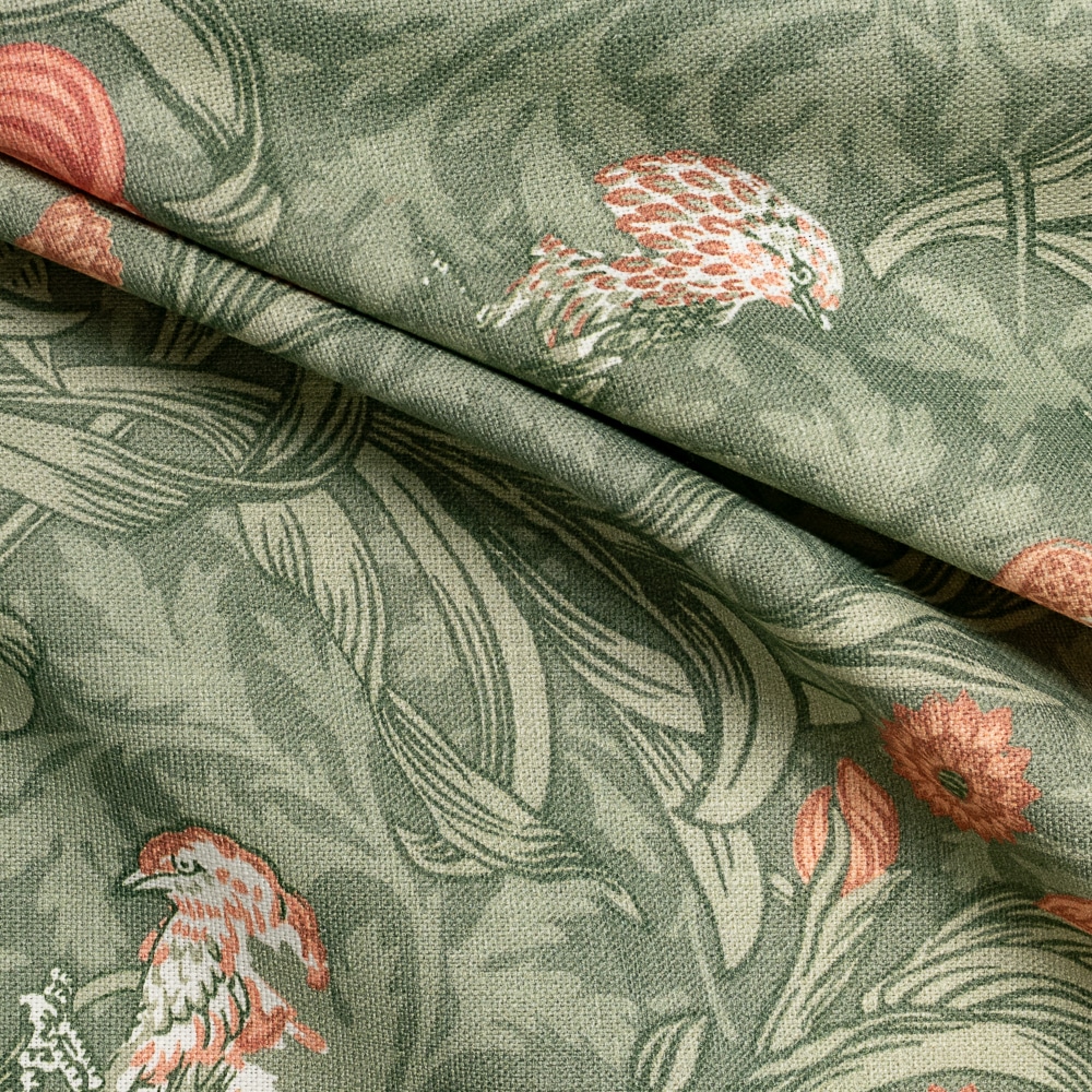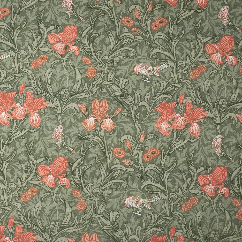 Tela Morris Flores Iris es un algodón semi-grueso estampado al estilo Morris con flores y pájaros en tonos beige y tierras, sobre fondo de hojas rameadas en tonos azules o verdes dependiendo de la tela. Este dibujo pertenece a la prestigiosa firma Morris. Es un tejido ideal para tapizar muebles como descalzadoras, butacas, bancos, sillas etc. pero también puedes comprar esta tela para hacer cortinas, estores, colchas y cualquier elemento decorativo como cojines o pantallas de lámpara. También es apta para la confección de manteles.