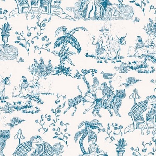 Papel pintado con estampado tropical y estilo poético que luce un llamativo y surrealista motivo de citas románticas, guiños descarados, en donde se dibujan mujeres montando tigres, palmeras desmayadas, granjeros coquetas y mucho más. Está disponible en tres tonalidades bicolor, teniendo la opción de elegir entre el tono negro o azul de los detalles sobre fondo blanco, o el rojo potente de los detalles sobre un fondo rosado. Los patrones de esta colección de autor en la que cinco artistas muestran el mundo bajo su vibrante mirada, son una explosión de creatividad, color, técnicas, y figuras, transformando arquitecturas blancas y sobrias en lugares únicos, en espacios con alma. El modelo Tipsy love destaca por su originalidad, sin duda es un papel decorativo que dará que hablar.